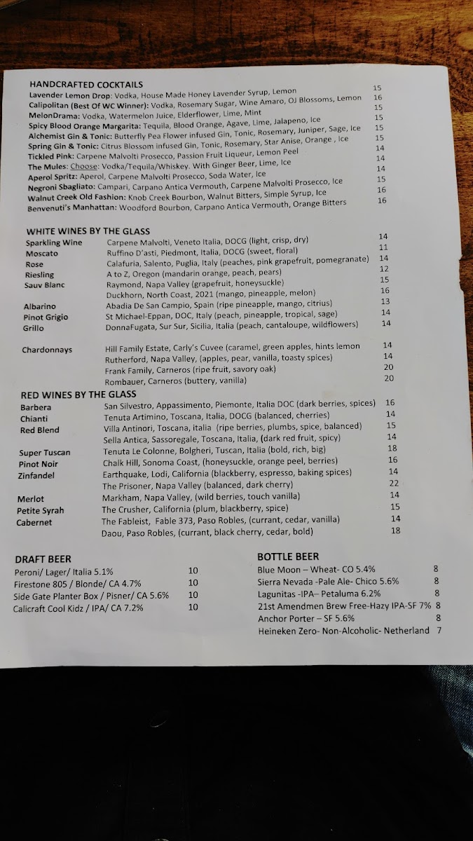 Welcome to Benvenuti Ristorante, a charming Italian restaurant located at 1627 N Broadway, Walnut Creek. This culinary gem offers a menu that is a tribute to authentic Italian cuisine. Dishes like the homemade fettuccine, soaked in rich flavors, and the abundant seafood pasta have garnered rave reviews from guests. The grilled salmon and chicken marsala are also celebrated for their impeccable taste and presentation.
